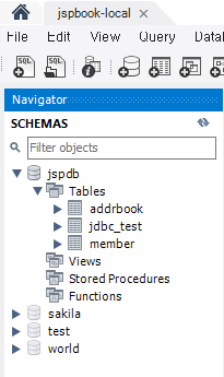 db를 보면 root 계정을 사용해 사용할 db(jspdb)를 생성해 놨음.