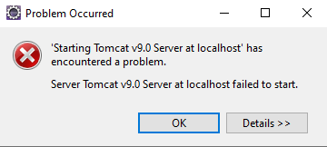 Server Tomcat v9.0 Server at localhost failed to start.