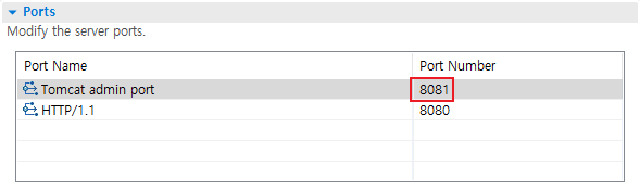 포트 번호에 다른 포트 번호와 겹치지 않는 번호를 넣어주고 저장해준다.