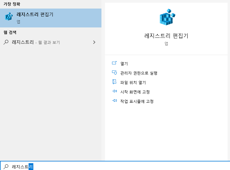 레지스트리 편집기 실행