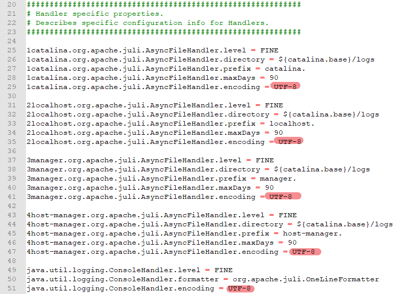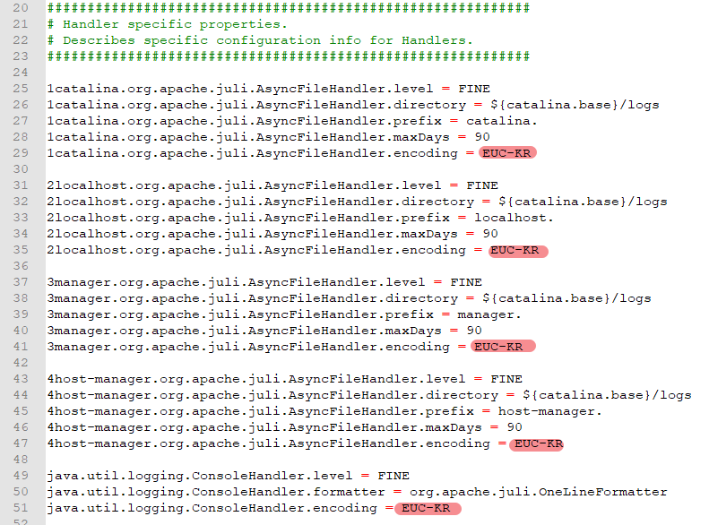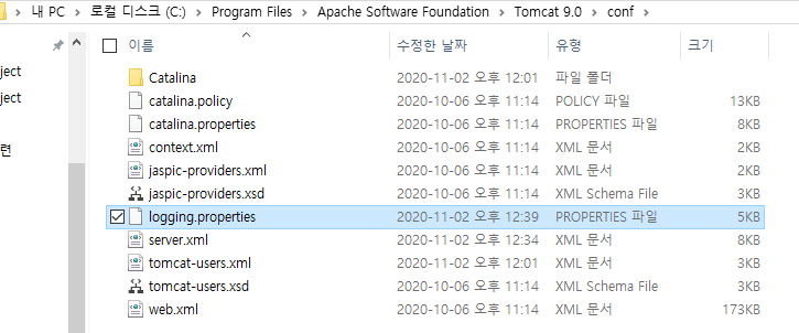 Tomcat이 설치된 폴더 - conf - logging.properties