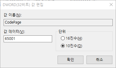 값 데이터엔 65001을 넣어주고 닫아줌.