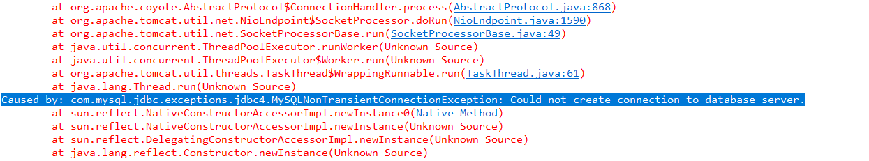 java.sql.SQLException: Cannot create PoolableConnectionFactory (Could not create connection to database server.) jsp