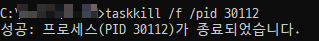 3. teskkill /f /pid [위에서 확인한 pid]