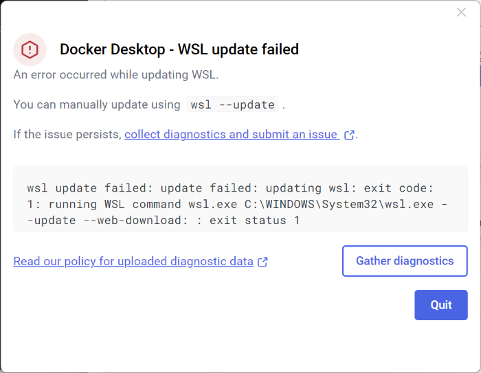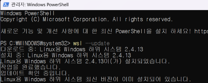 wsl --update를 해주고 다시 실행시킨다.
