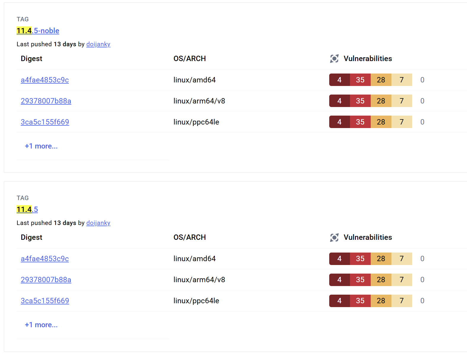 mariadb-tags 에서 11.4 를 찾으면 11.4.5와 11.4.5-noble이 있다.