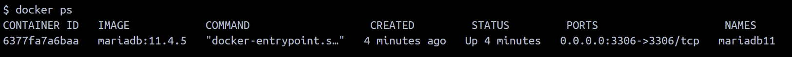 | mariadb:11.4.5 | MariaDB 정확한 버전 지정 |