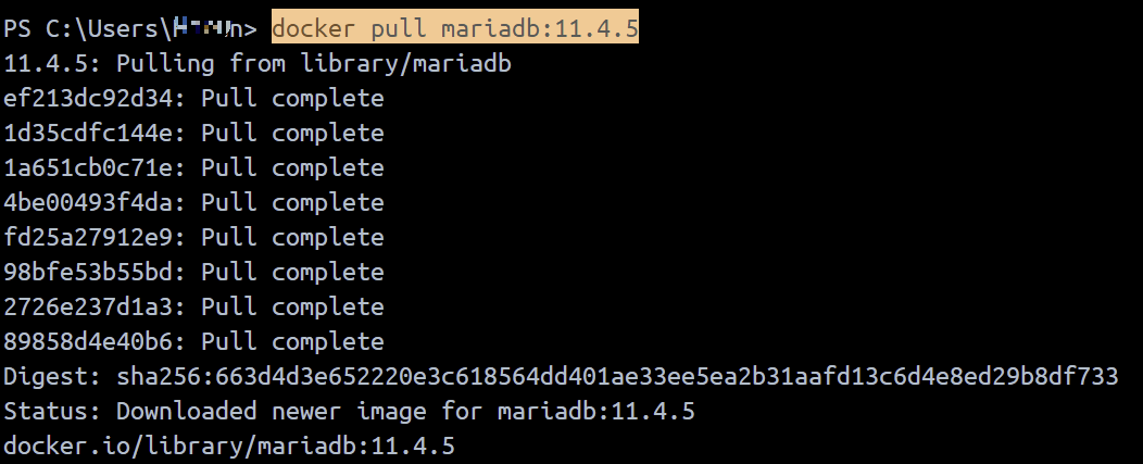 docekr desktop에서 확인해보니 mariadb 11.4.5 이미지가 정상적으로 추가됐다.