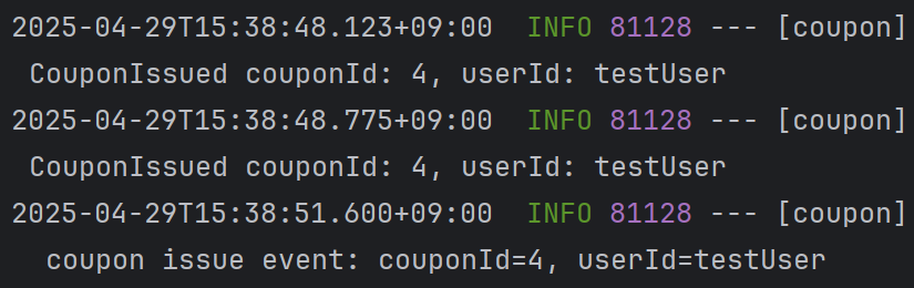 log.info("Processing coupon issue event: couponId={}, userId={}", couponIdStr, userId);