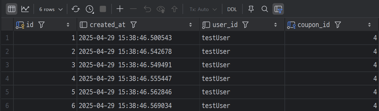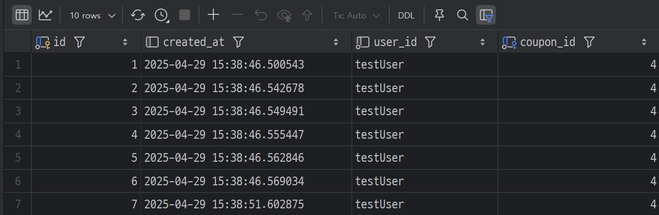 10번 발급 신청을하고 DB 를 확인해보면