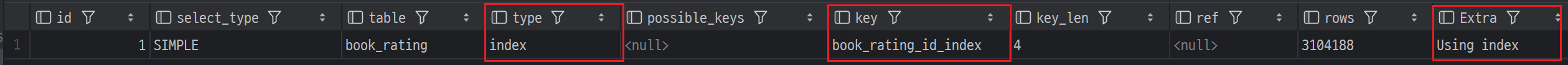 EXPLAIN SELECT COUNT(*) FROM book_rating;