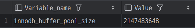 | innodb_buffer_pool_size | 테이블, 인덱스, row 데이터를 메모리에 캐싱 | 데이터를 디스크에서 읽지 않고 메모리에서 처리 가능 → 조회 속도 대폭 향상 |