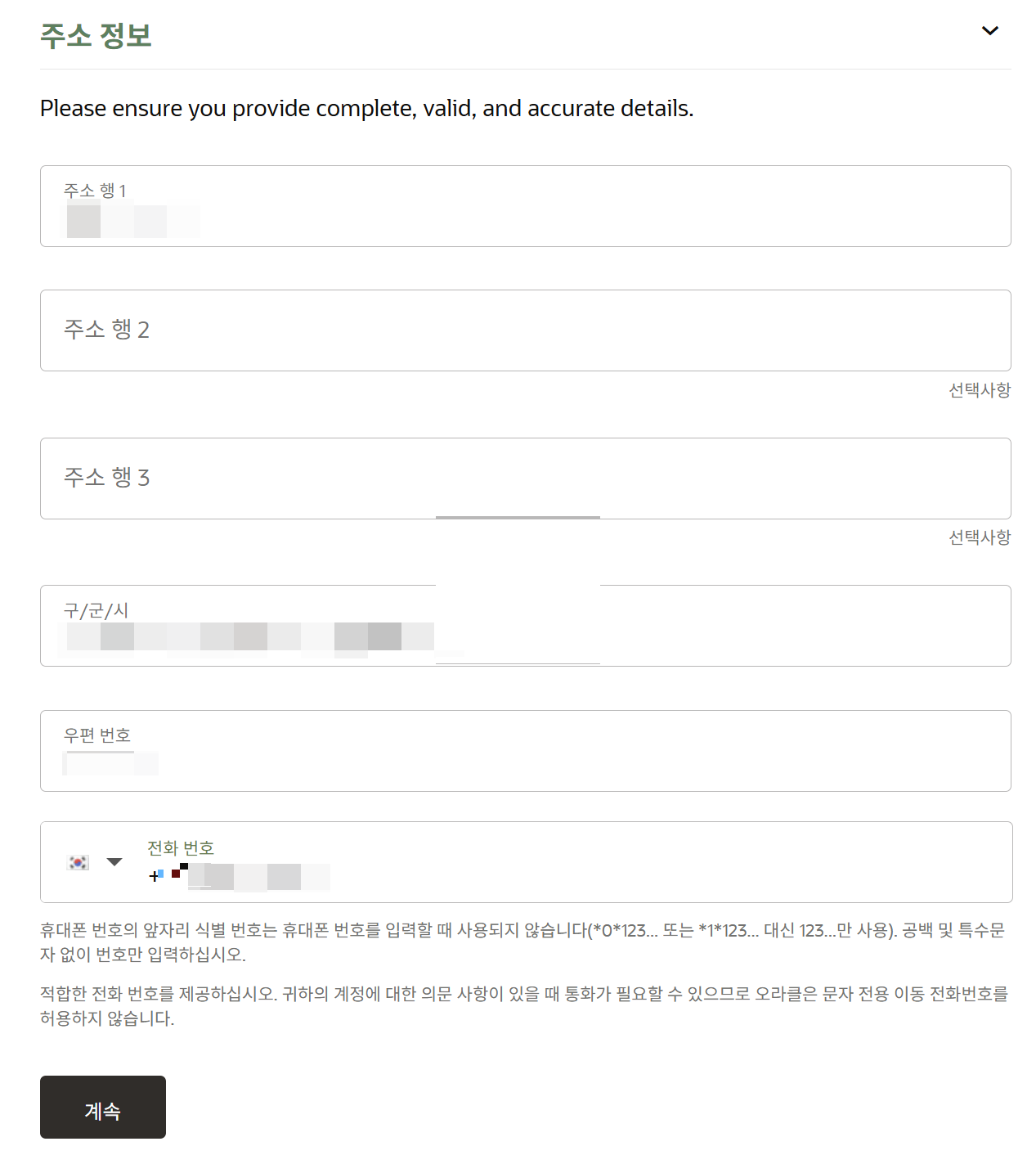 주소 정보는 한국으로 해도 상관없다. 물론 영문으로 입력하도록하자.