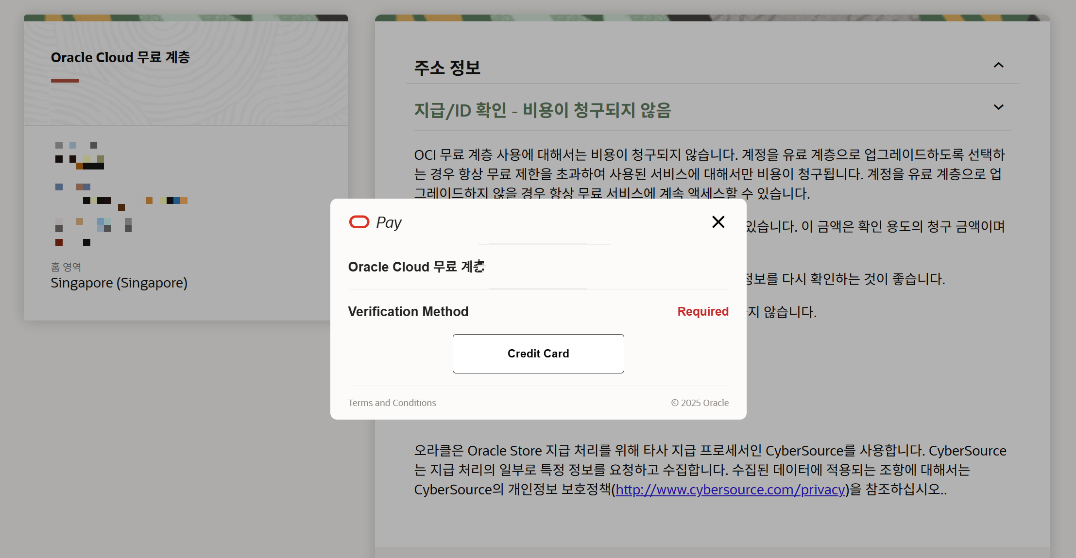 이것은 새로운 카드이며 이전에 오라클에서 사용된 적이 없습니다. 가입을 완료하거나 제 신원을 수동으로 확인하는 데 도움을 주실 수 있나요?