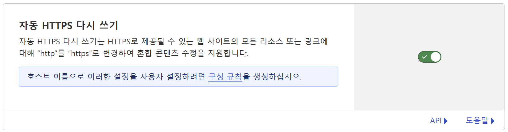 - Automatic HTTPS Rewrites: 리소스 내 HTTP 링크도 자동 HTTPS로 변환