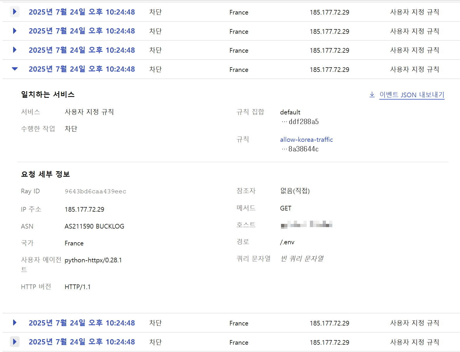 이건 서버에 도달하기 전 Cloudflare 경계에서 차단되므로 실질적인 "접근 자체"를 차단하는 효과가 있습니다.