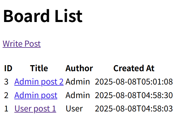 SELECT id, writer, title, created_date