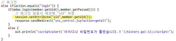 jsp 프로젝트를 따라치던 중에 ${} 이게 등장했다. 분명 session에 "uid"라는 이름으로 값을 저장했는데 session.getAttribute() 없이 uid를 사용하고 있었던 것..! 아무리 찾아봐도 getAttribute가 쓰인 곳이 없는데... ${ } 그러던 중 라는 걸 검색해서 알게됐다. ${ }은 영역(Scope : request, sessiong, application) 객체값을 가져와 출력할 수 있다. // Scope.jsp request.setAttribute("id", "haeun"); session.setAttribute("passwd", "1234"); application.setAttribute("name", "shin"); response.sendRedirect("ma..